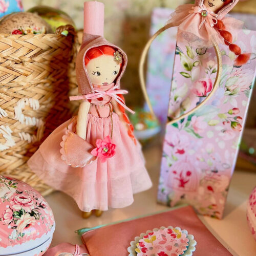 Χειροποίητη κούκλα σε στολισμενη λαμπάδα
