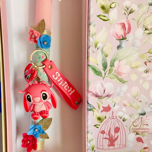 Aρωματική λαμπάδα με χειροποίητη καρφίτσα λιλά ποντικίνα