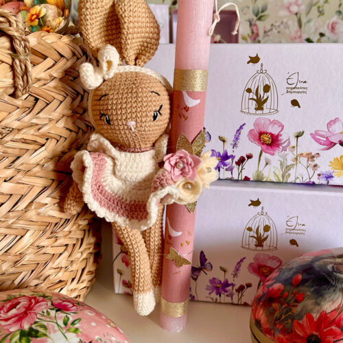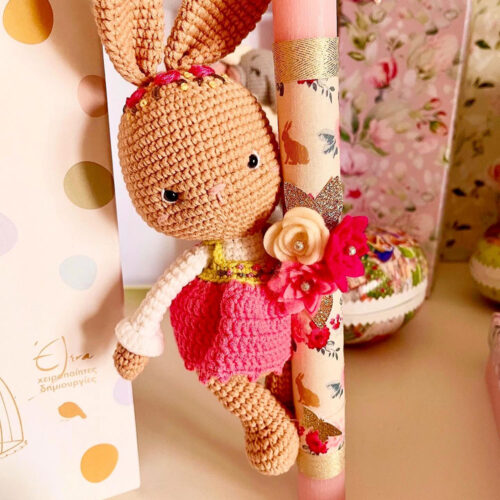 Xειροποίητη λαμπαδα με πλεκτό λαγουδάκι {ροζ φορεμα}