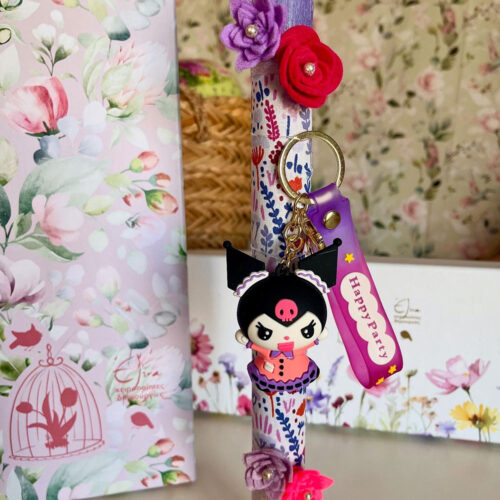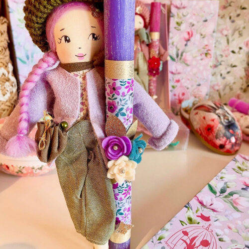 Λαμπάδα με χειροποίητη κούκλα στα λιλά σε large