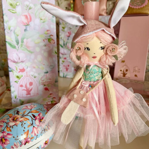 Λαμπάδα με χειροποίητη κουκλα – Χιπισσα φουξια μαλλια