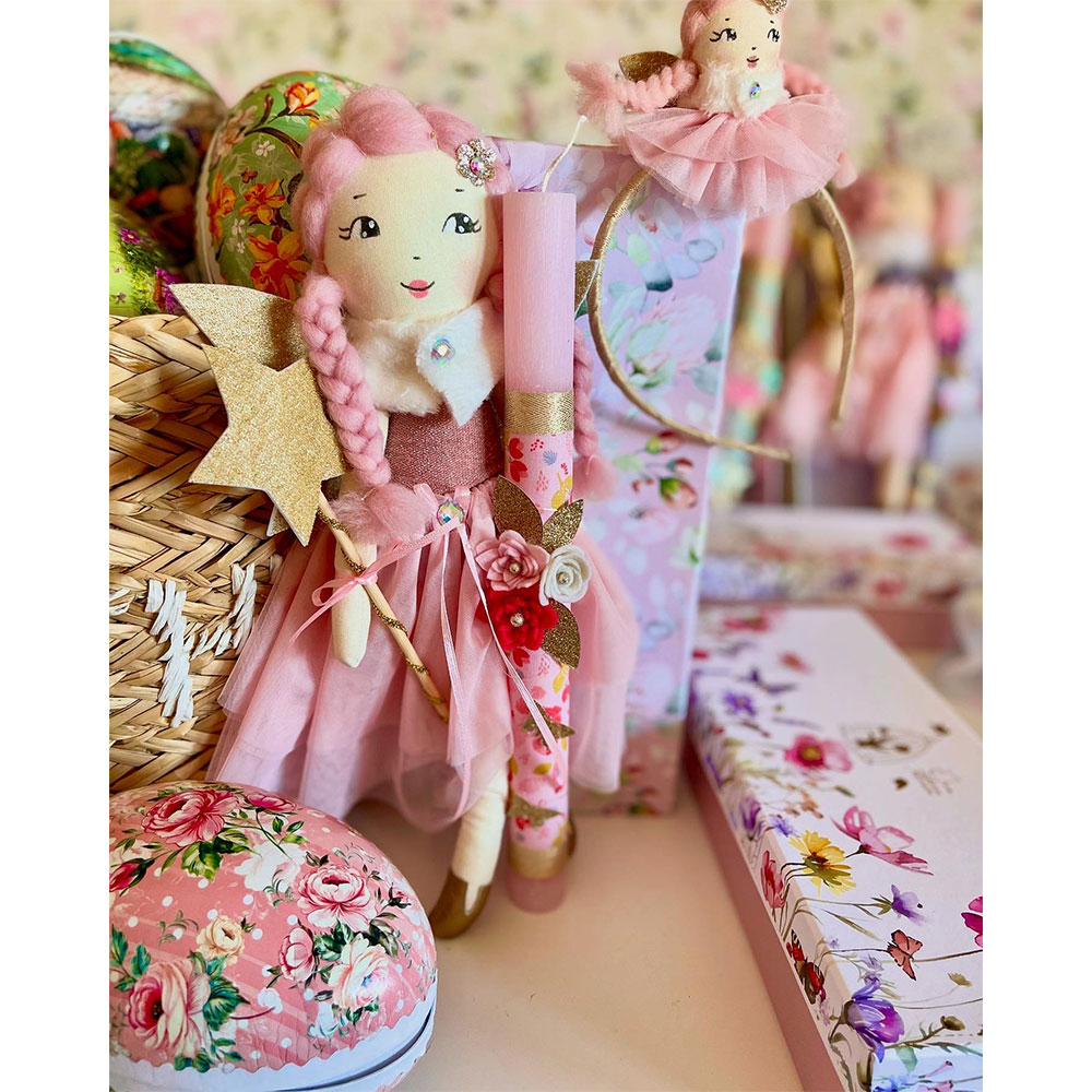 Χειροποίητη κούκλα X-LARGE μέγεθος περίπου 33-35 εκ σε στολισμένη αρωματική λαμπάδα