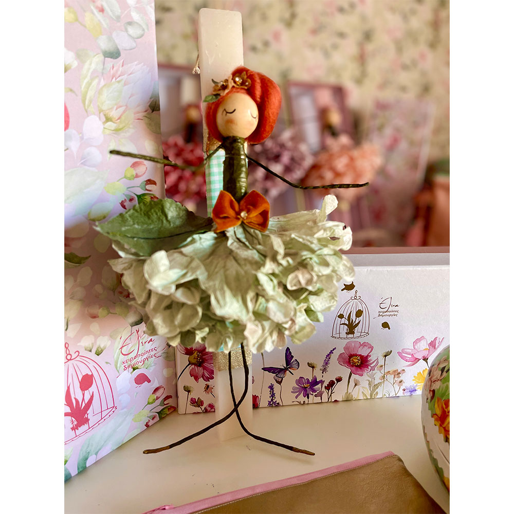 Αρωματική λαμπάδα με χειροποίητη βεραμάν Ορτανσία