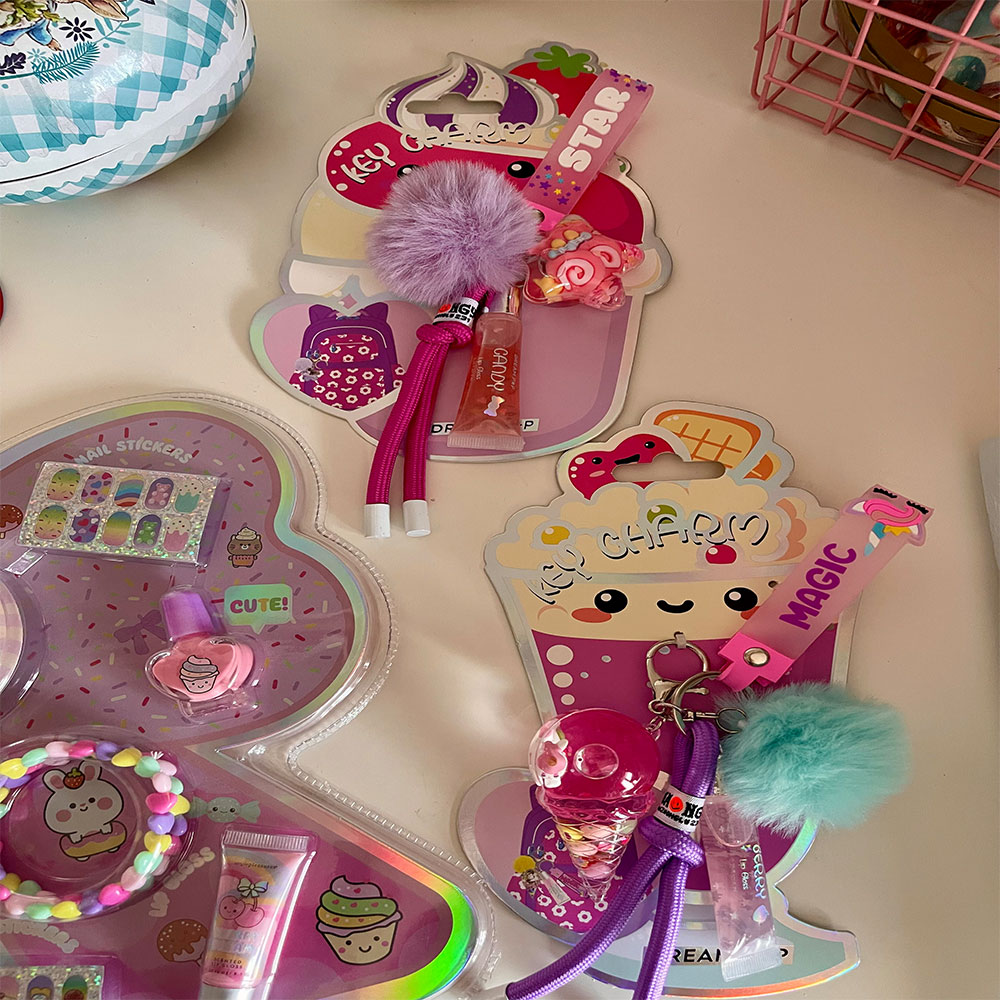Φανταστικό ,μπρελόκ με όμορφα κρεμαστά δικοσμητικα και lip gloss κατάλληλο για παιδιά .