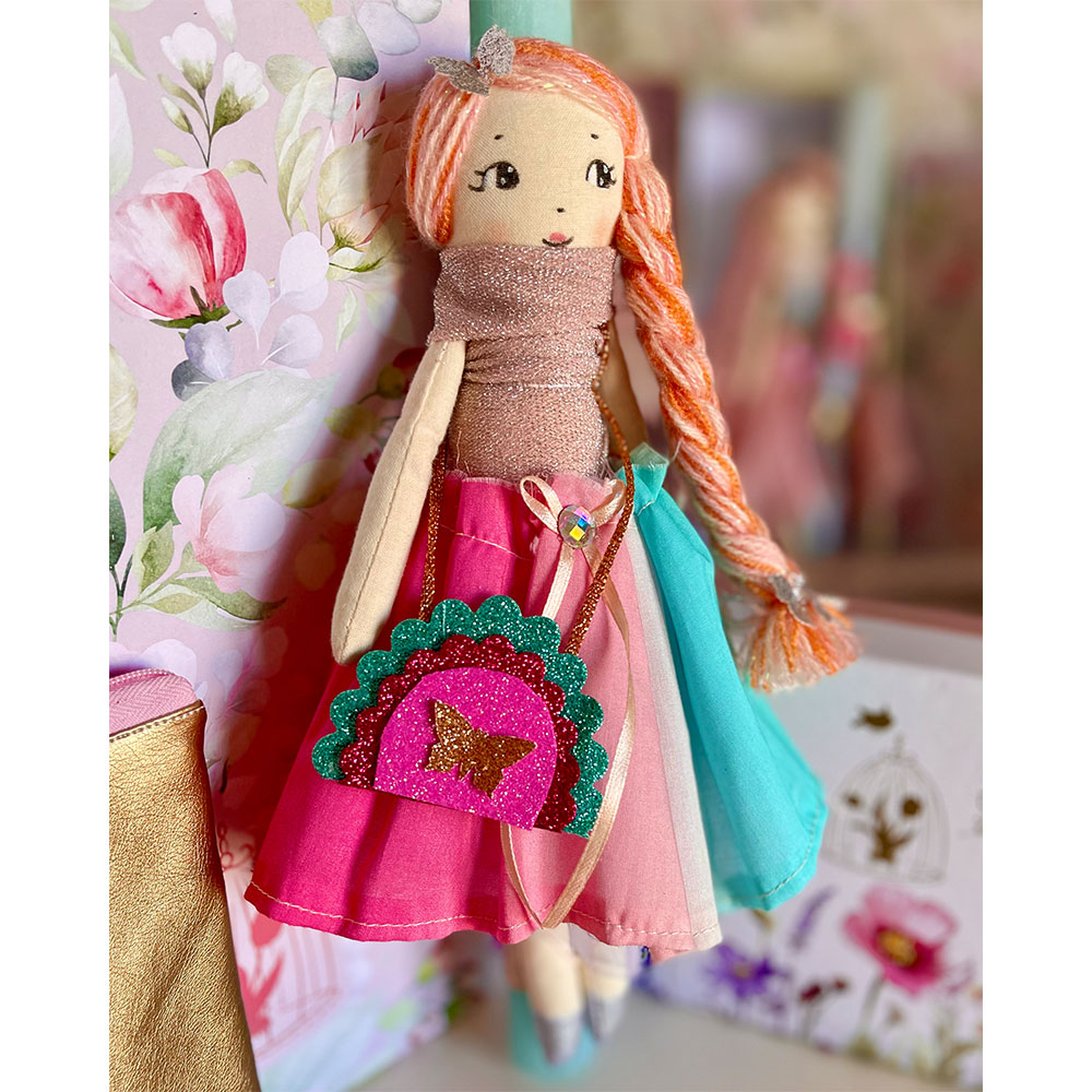 Χειροποίητη κούκλα ουράνιο τόξο 25 εκ πάνω σε αρωματική λαμπάδα ύψους 30 εκ . Ραμμένη και ζωγραφισμένη στο χέρι με προσοχή στη κάθε λεπτομέρεια!