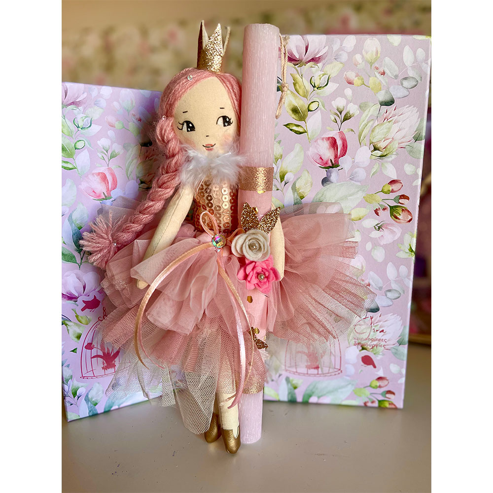 Χειροποίητη κούκλα X-LARGE μέγεθος περίπου 33-35 εκ σε στολισμένη αρωματική λαμπάδα