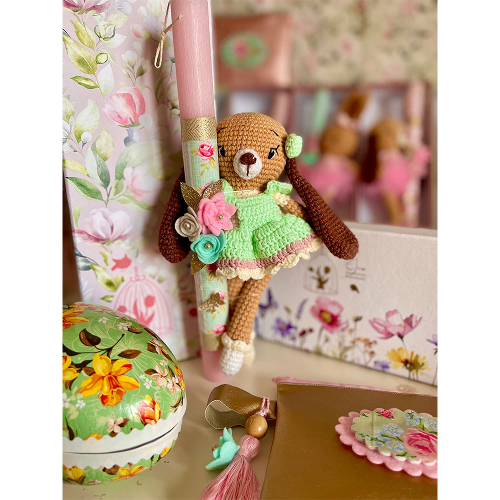 Λαμπάδα με χειροποίητο πλεκτό σκυλάκι βεραμάν