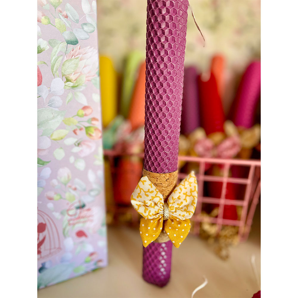 Αγνό μελισσοκέρι 27εκ ύψος και 2,7εκ πάχος με χειροποίητο λαστιχάκι μαλλιών πεταλούδα