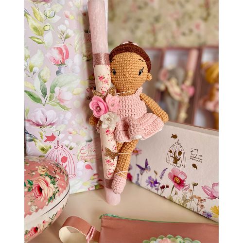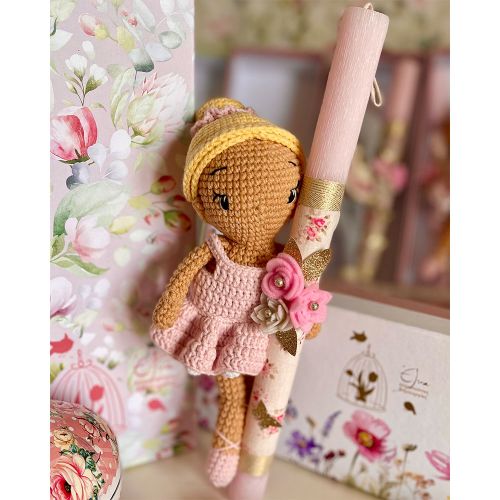 Λαμπάδα με χειροποίητη πλεκτή μπαλαρίνα ,ξανθιά