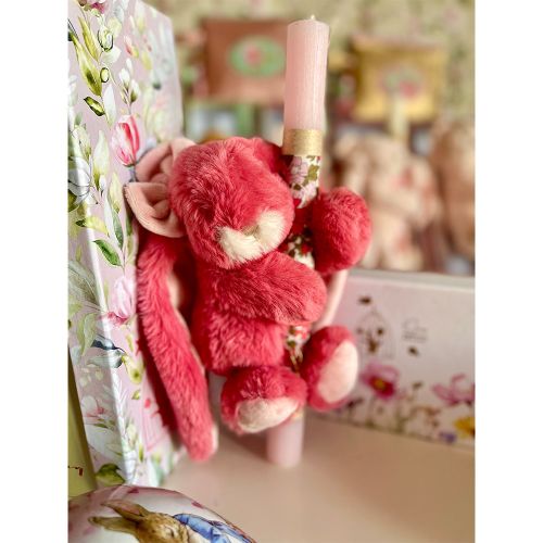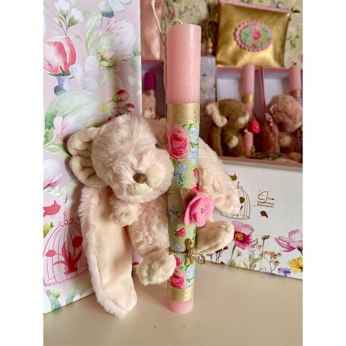 Αρωματική λαμπάδα με απαλό κουνελάκι dusty pink φλοραλ