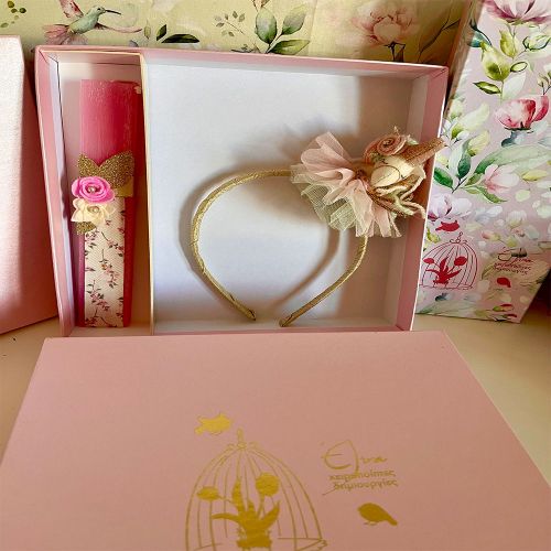 Σετ λαμπάδα με χειροποίητη στεκα ροζ-ποντικίνα και κουτί πολυτελείας