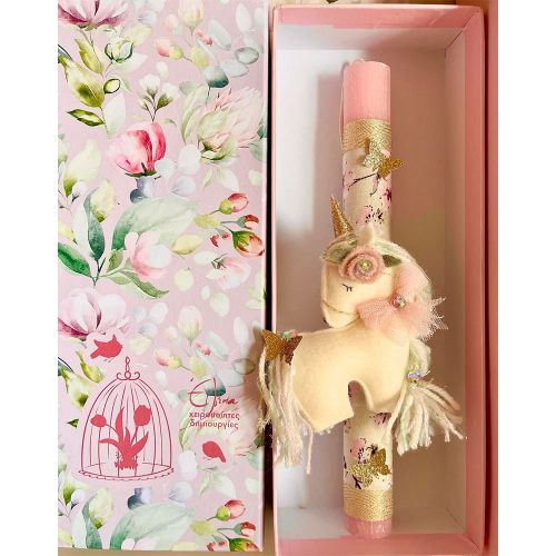 Σετ λαμπάδα με χειροποίητη στέκα – μονόκερος και κουτί πολυτελείας